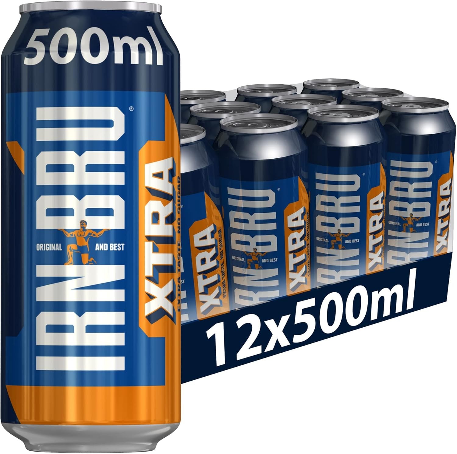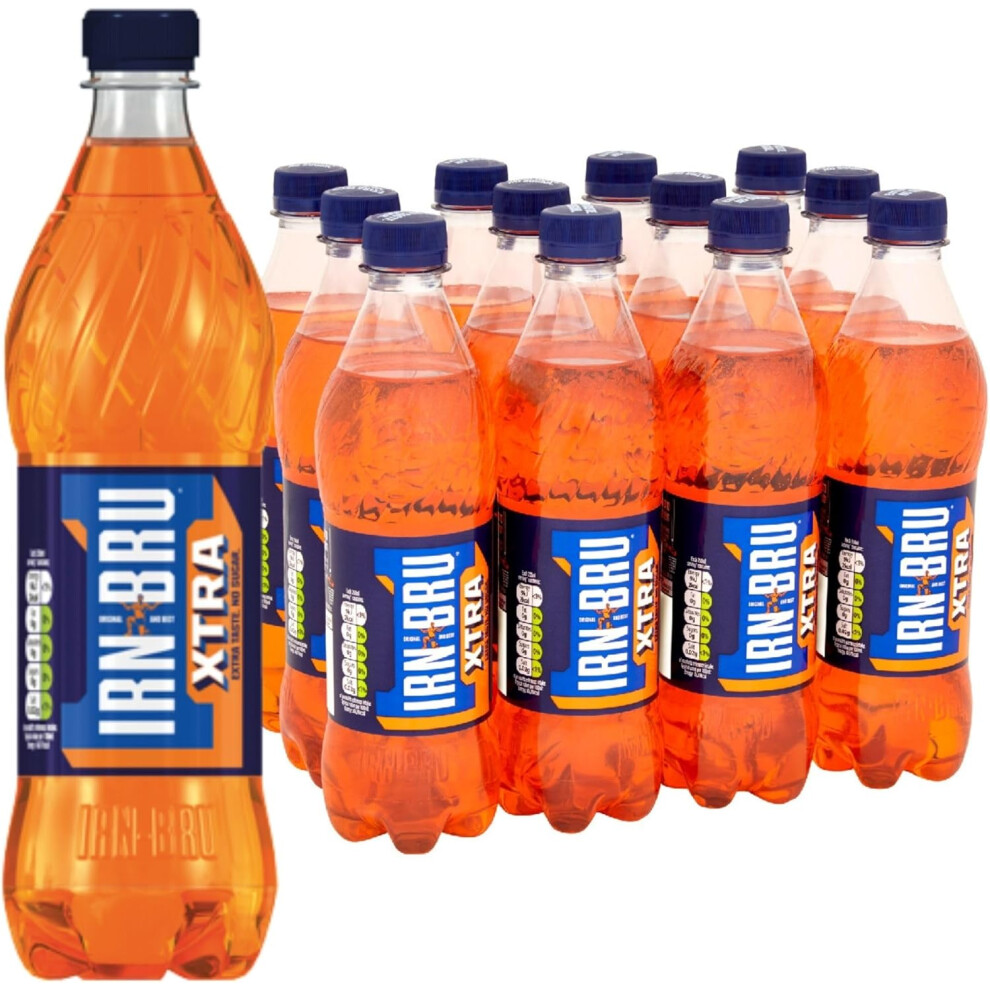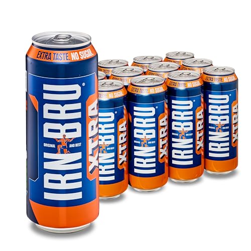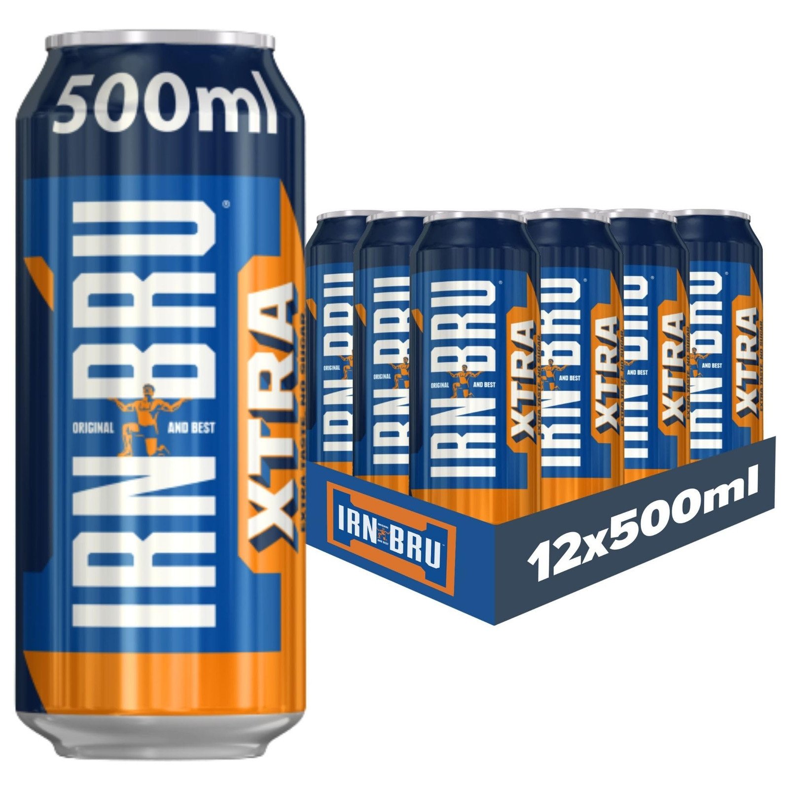 IRN-BRU XTRA, 12 Pack Zero No Sugar & Low Calorie with XTRA Taste Fizzy Drink Multipack Cans - 12 x 500ml Big Cans