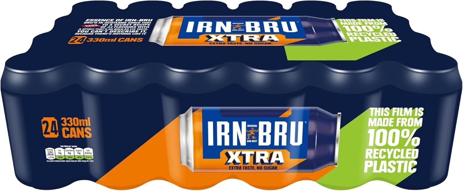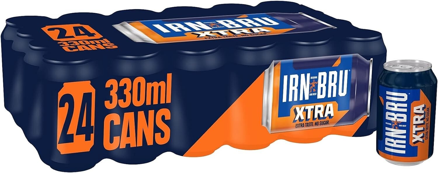 âIRN-BRU IRN-BRU XTRA, 24 Pack Zero No Sugar & Low Calorie Fizzy Drinks Multipack Cans with XTRA Taste - x 330ml