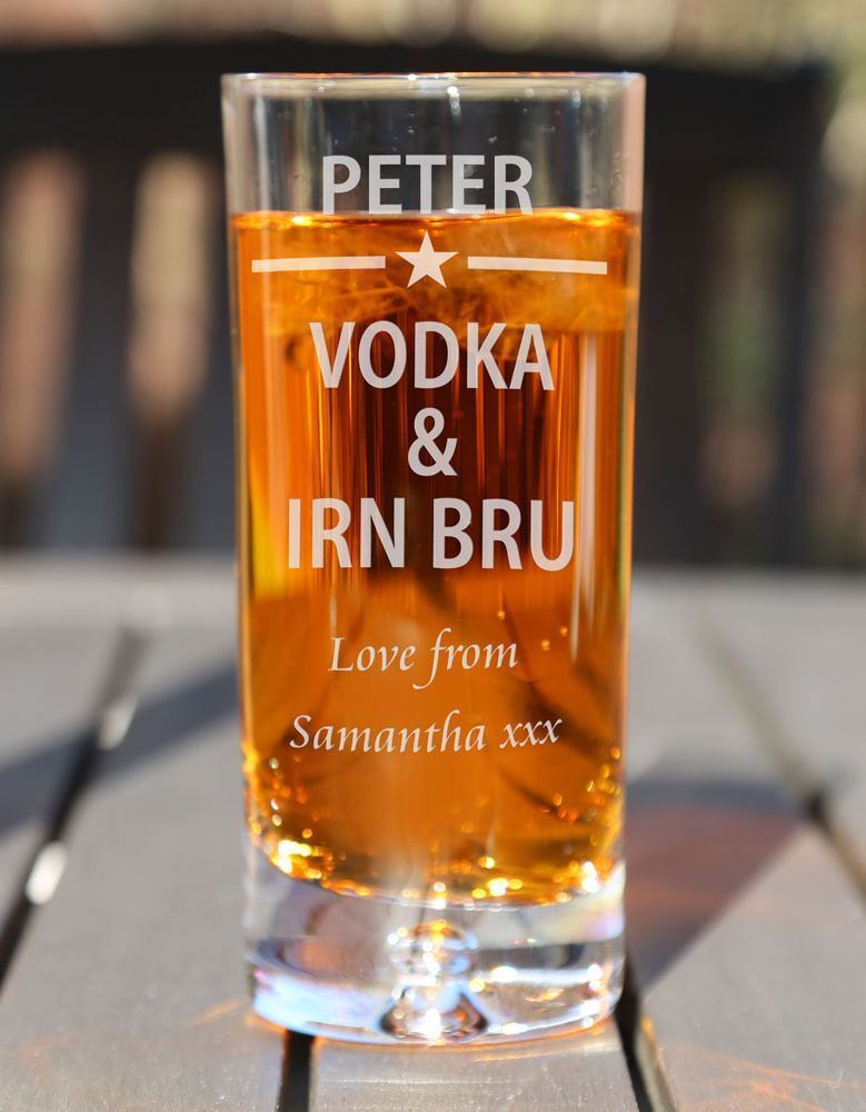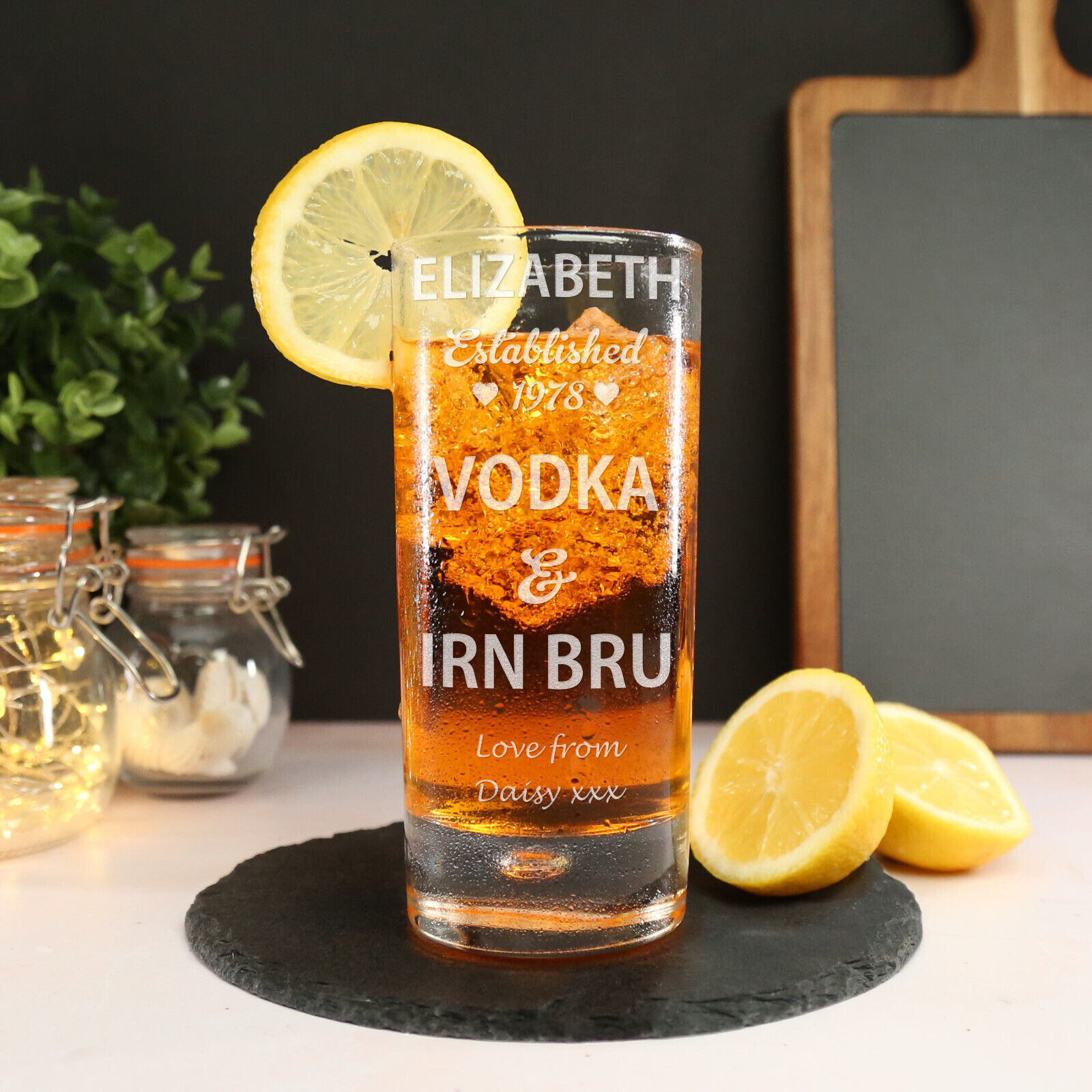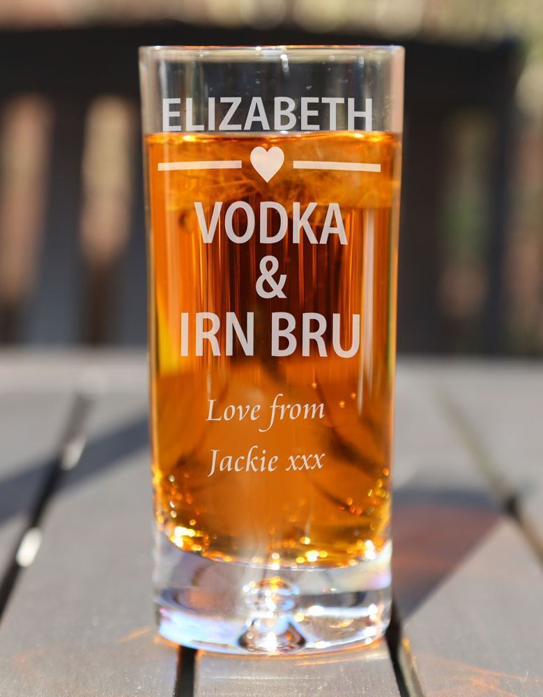 Engraved Boxed Vodka & Irn Bru Glass Birthday Christmas Xmas Gift Est. Heart
