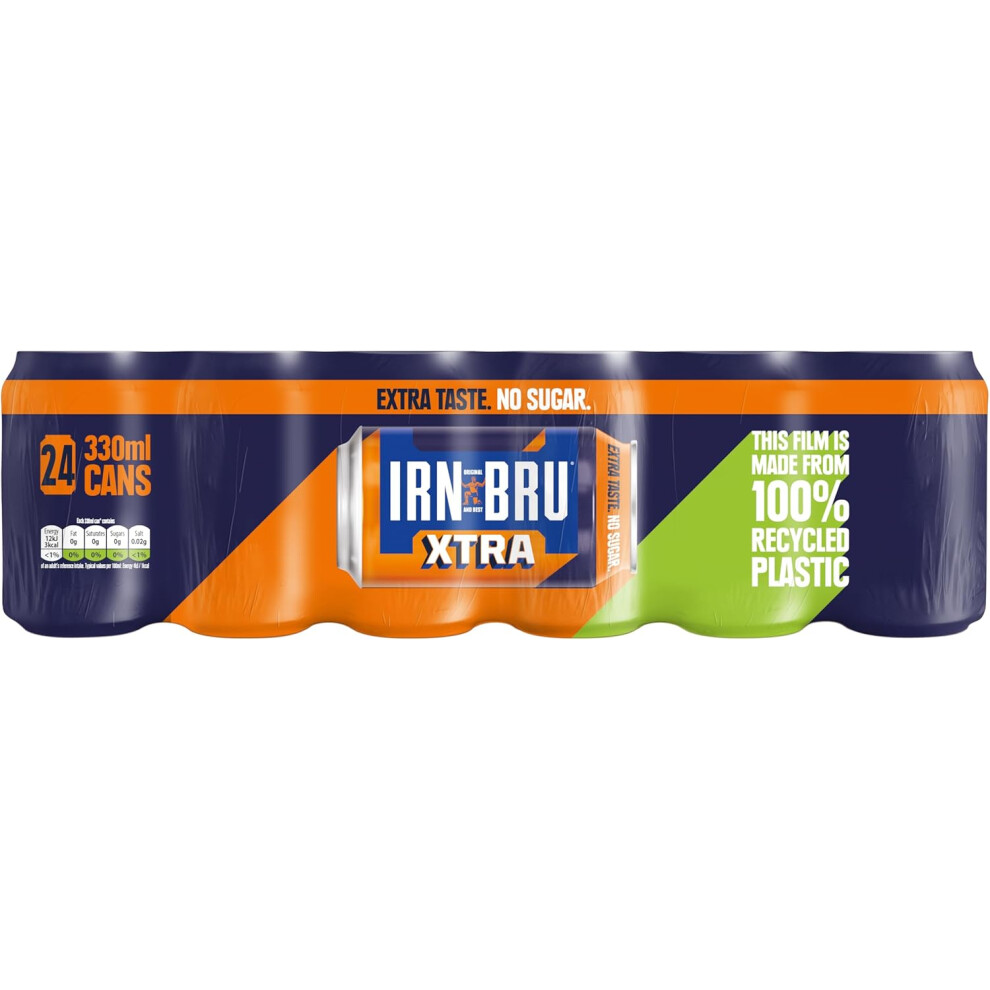 IRN-BRU XTRA Taste No Sugar, 24 x 330ml, Fizzy Drinks Multipack Cans (Pack of 24)
