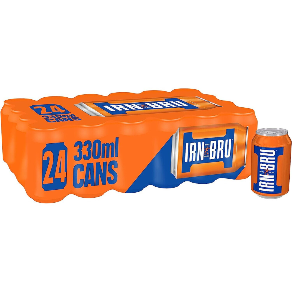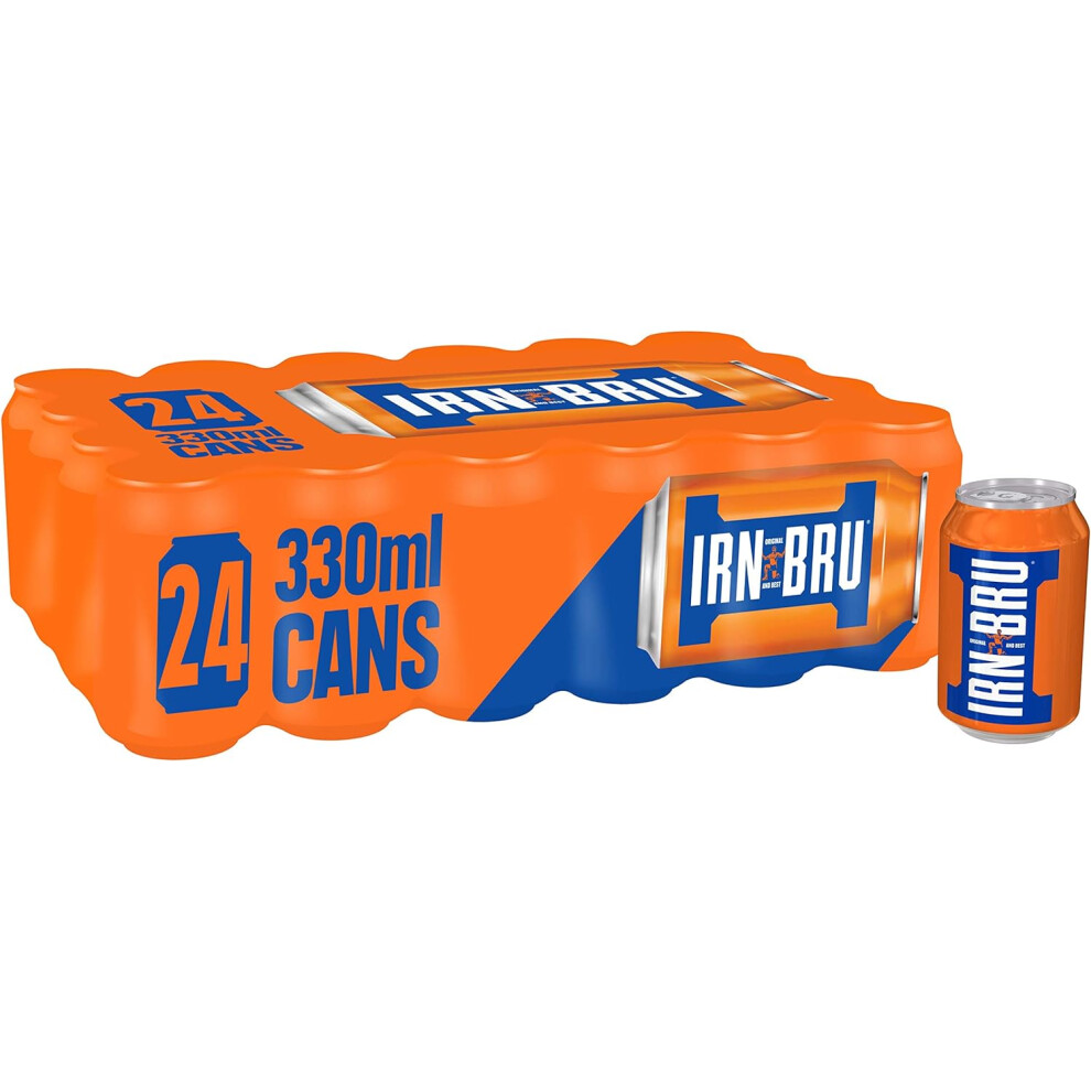 IRN-BRU Regular 24 x 330ml Cans - Sugar-Free, No Artificial Colours, Vegetarian, Iconic Bold Fizzy Drink Since 1901