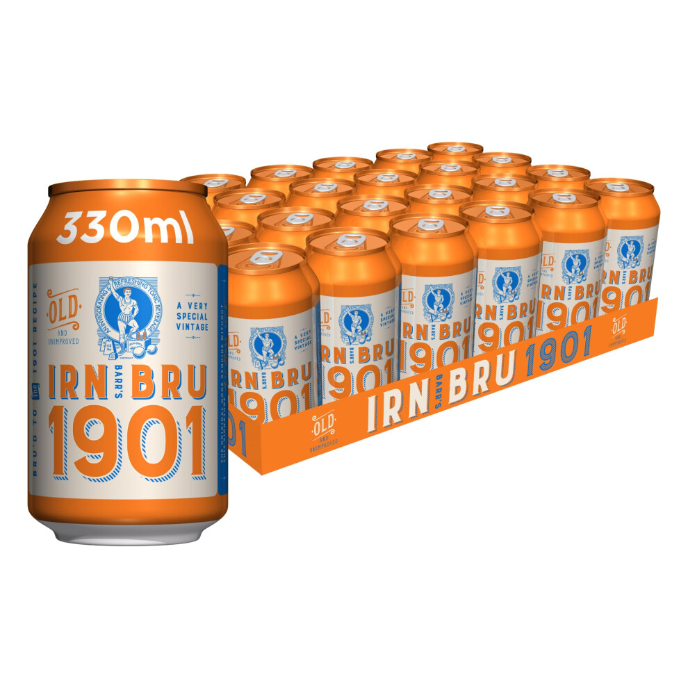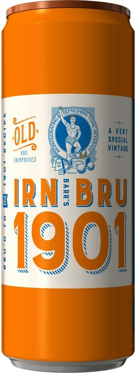 IRN-BRU 1901, 24 Pack A Very Special Vintage Recipe, No Caffeine, Full Sugar, Taste The First Ever IRN-BRU Recipe - 24 x 330ml Cans