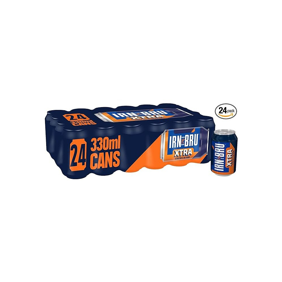 IRN-BRU XTRA, 24 Pack Zero No Sugar & Low Calorie Fizzy Drinks Multipack Cans with XTRA Taste - 24 x 330ml Cans