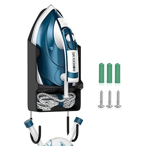 Black Ironing Board Holder - Wall Mount Electric Iron Hanger Rack with Over Door or Wall Mount in Laundry Room