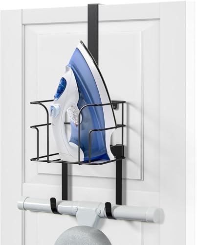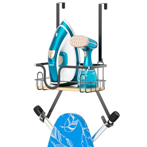 Over The Door/Wall Mount Ironing Board Hanger, Laundry Room Iron and Black
