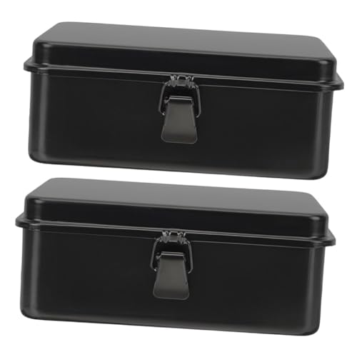 Ipetboom 2PCS Thickened Black Iron Tool Boxes Portable Small Metal Toolbox Car Tool Storage Case Compact Mechanics Hand Carry Organizer for Home Garage Workshop