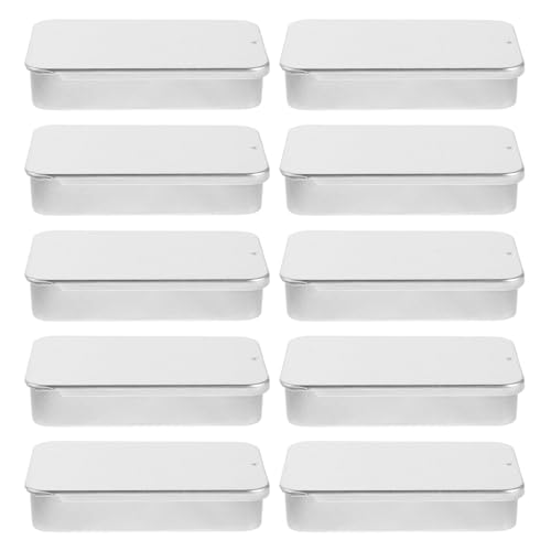 Hohopeti 10Pcs Rectangular Sliding Lid Iron Storage Boxes for Floss Lip Balm Craft Supplies Portable Metal Containers with Lids Silver Organizers for Travel and Christmas
