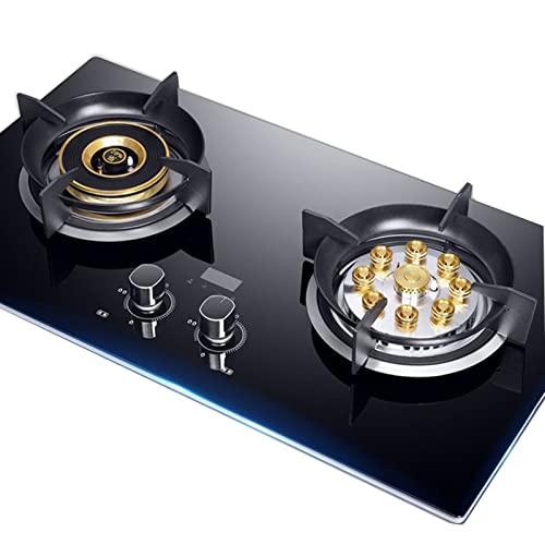 Gas Stove 2 Burner, 9 Cavity Tall Flame Cast Iron Pot Brackets, Bilateral Timing, Accidental Flameout Protection Device, Suitable for Black Glass Independent Stoves of Caravan Cars (Size : NG)