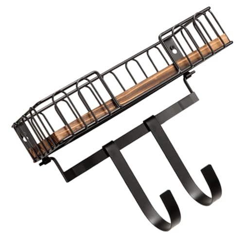 FOMIYES Wood and Iron Wall Key Holder Rack with Hooks, Storage Shelf for Bags and Ironing Boards, Multipurpose Entryway Organizer for Home and Kitchen