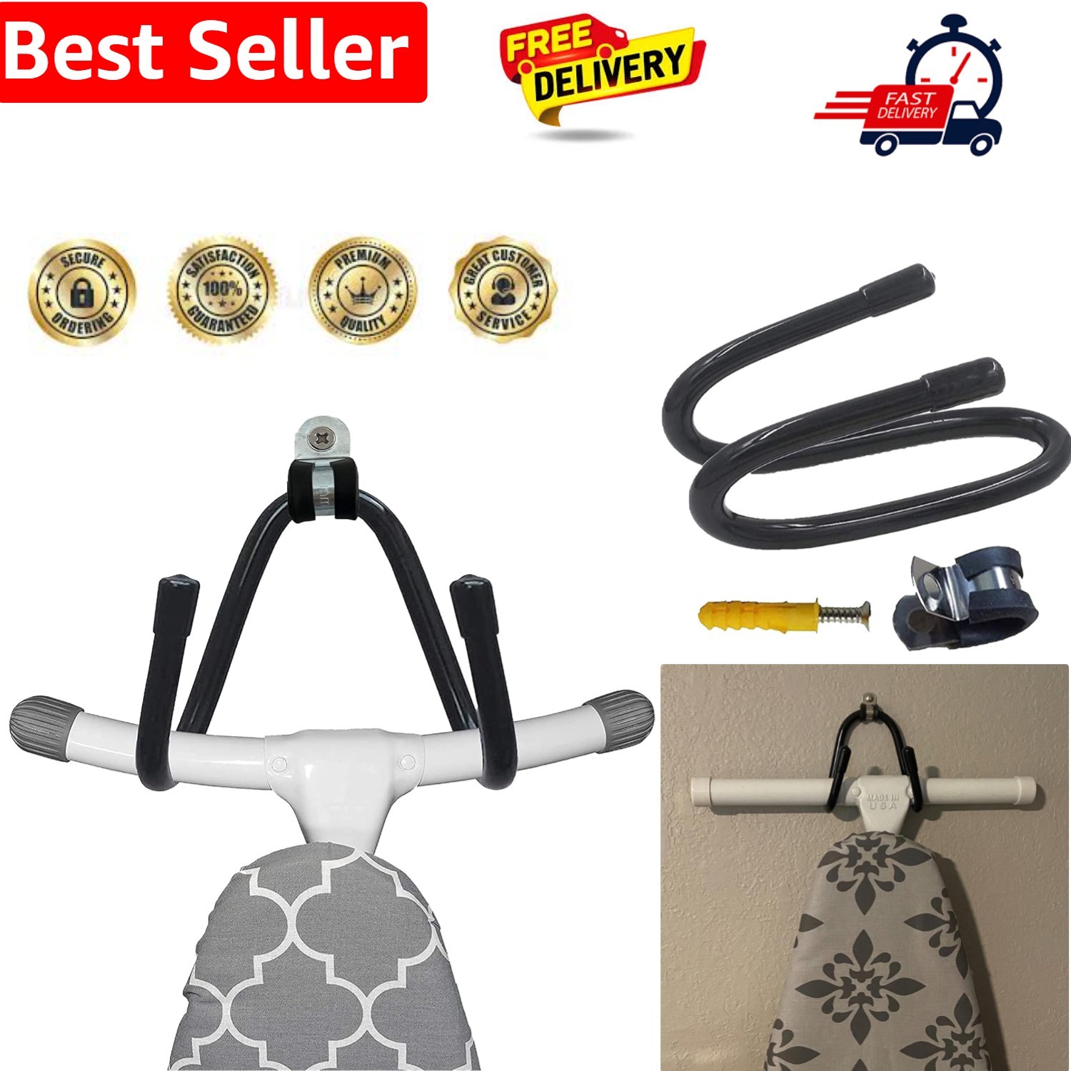 Bendable Wall Mount Ironing Board Holder Iron Board Hook Ironing Boards Stora...