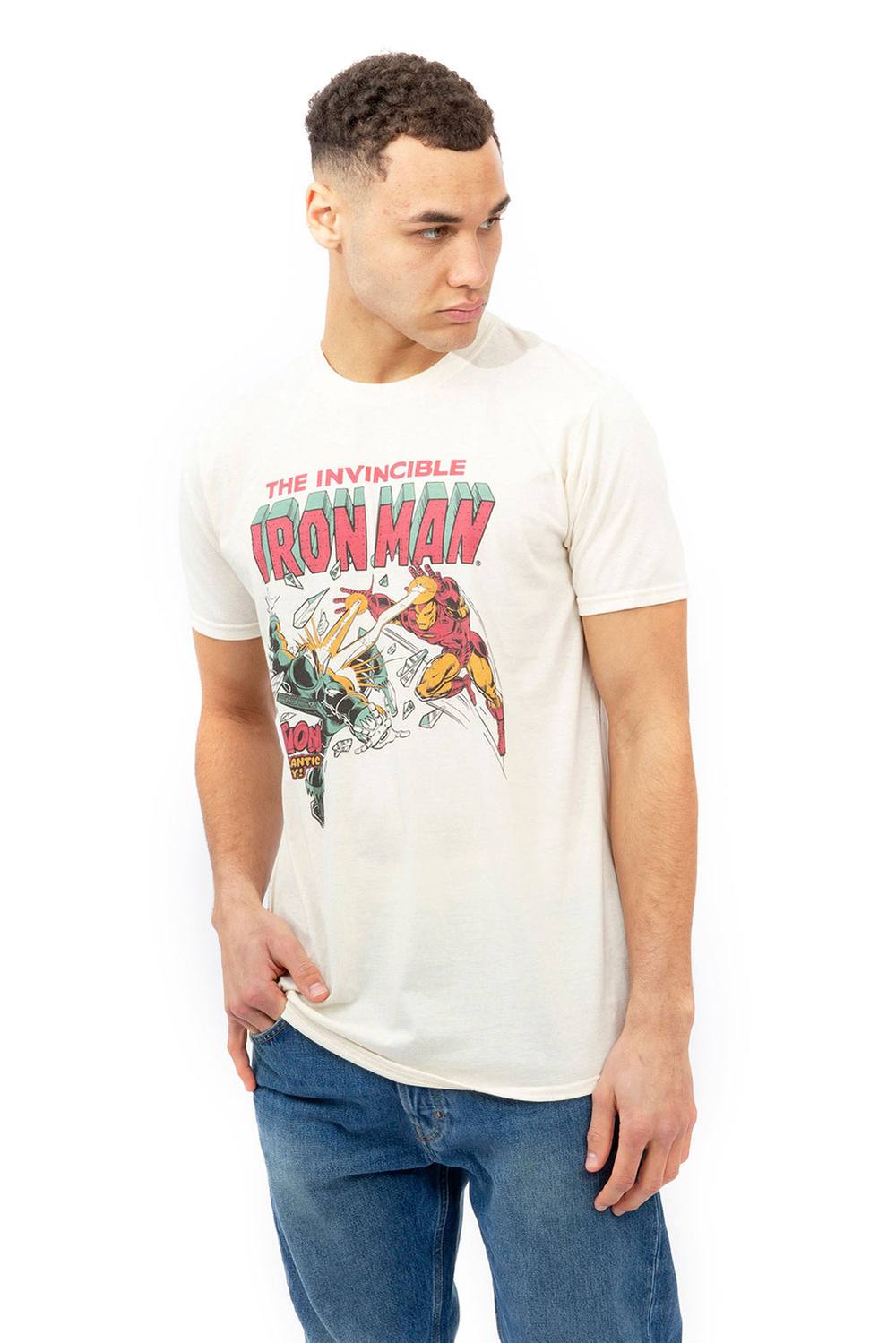 Marvel Men Iron Man Blast Cotton T-shirt in Beige | Size: X-Large