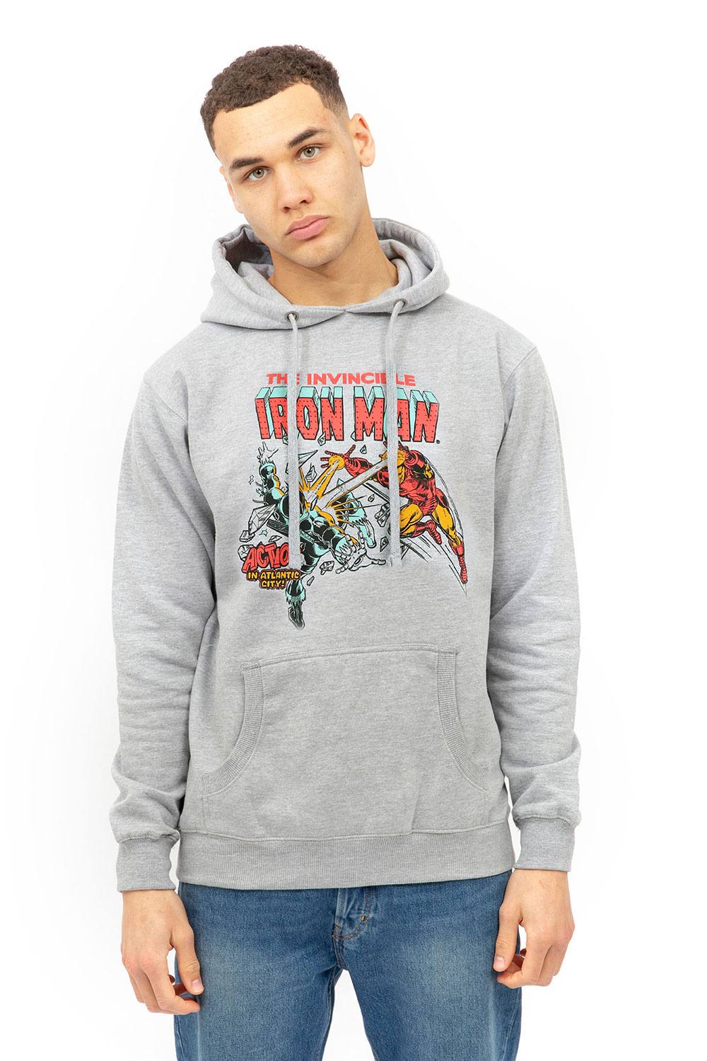 Marvel Men Iron Man Blast Cotton Hoodie in Grey | Size: large