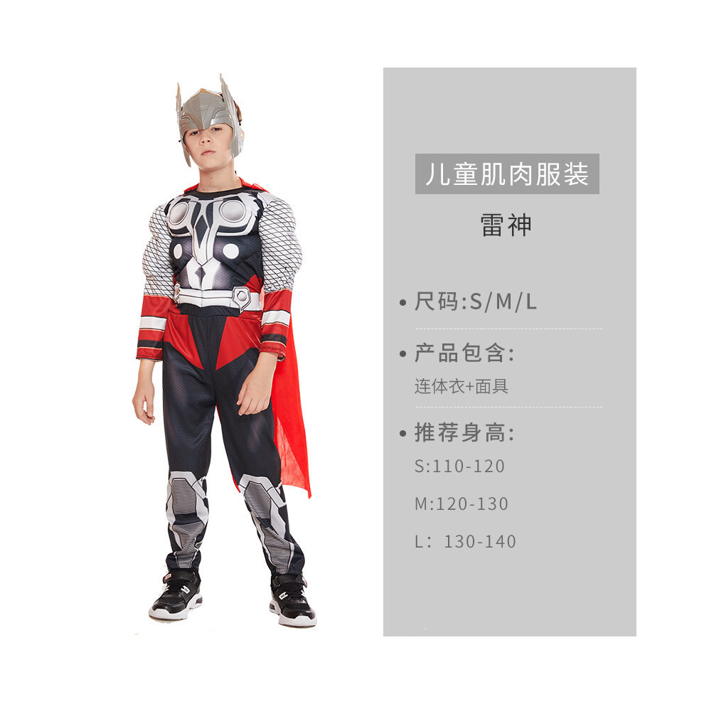 (Children's Muscle Thor, M) Avengers Iron Man Spider-Man Captain America Cosplay Halloween Children's Costume Superhero Iron Man