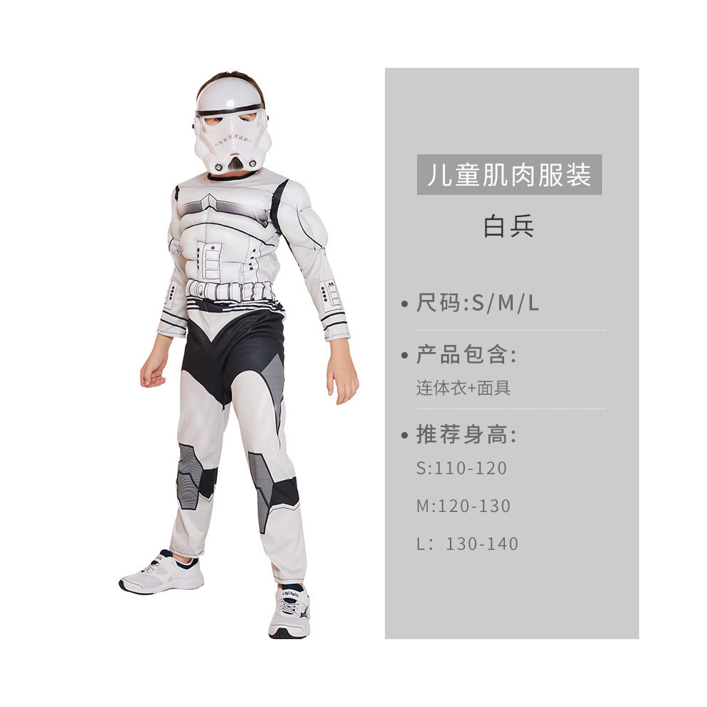 (Children's Muscle White Soldier, M) Avengers Iron Man Spider-Man Captain America Cosplay Halloween Children's Costume Superhero Iron Man