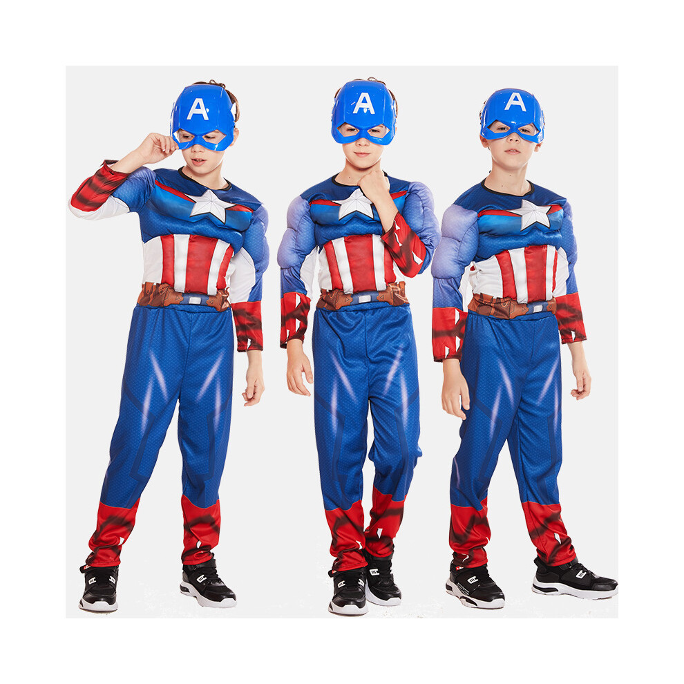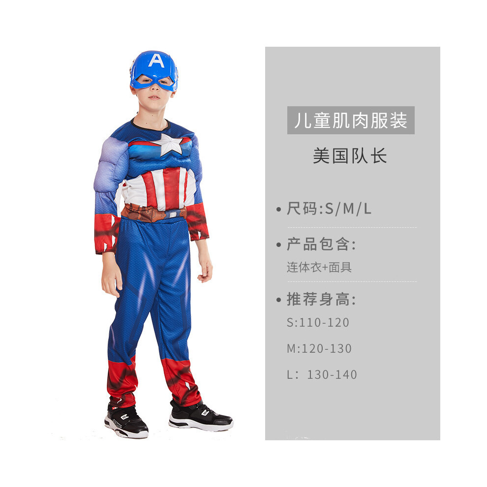 (Children's Muscle Captain America, M) Avengers Iron Man Spider-Man Captain America Cosplay Halloween Children's Costume Superhero Iron Man