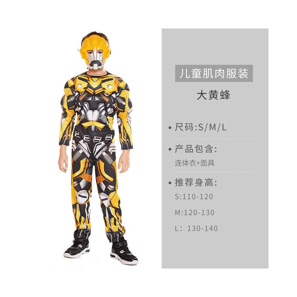 (Children's Muscle Bumblebee, M) Avengers Iron Man Spider-Man Captain America Cosplay Halloween Children's Costume Superhero Iron Man