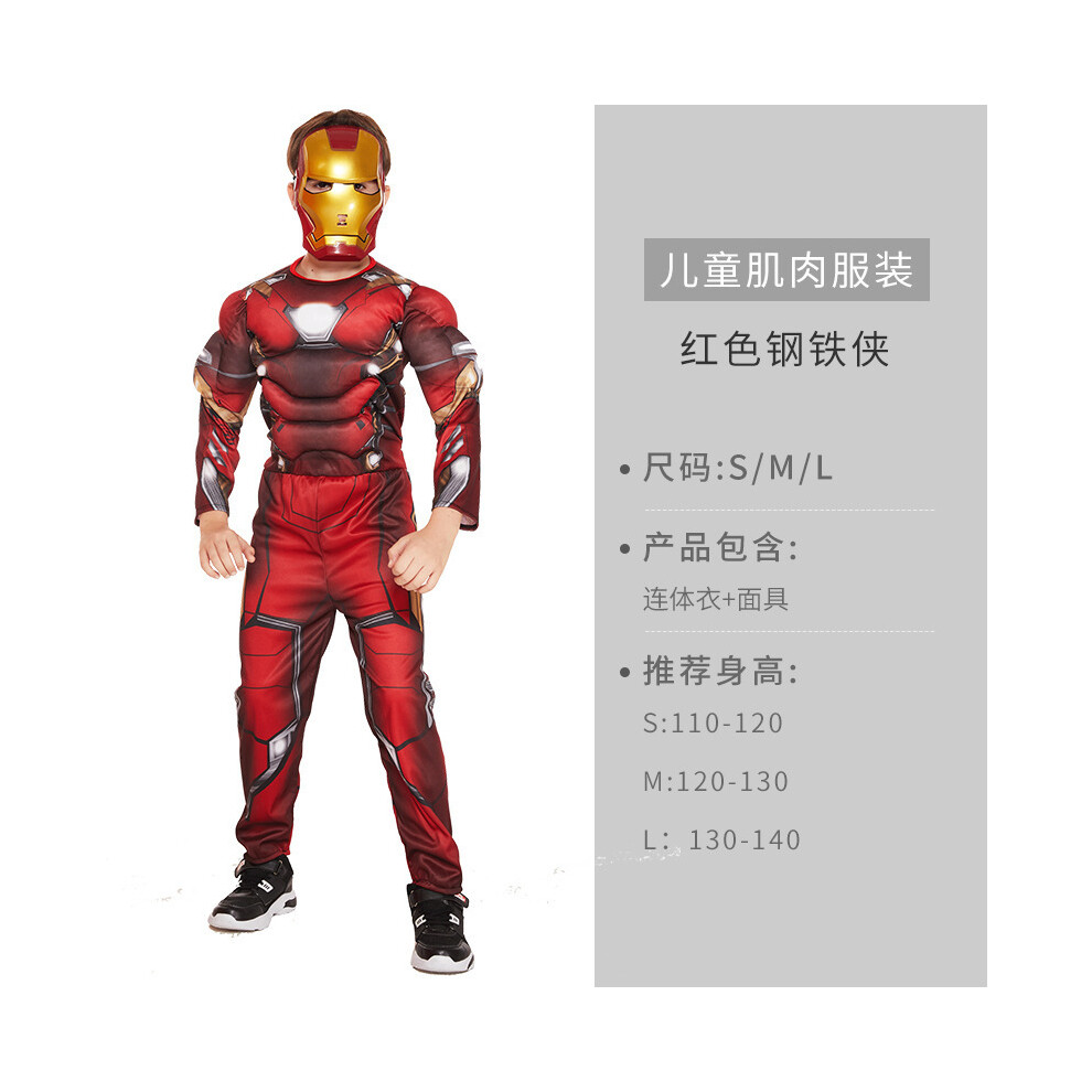 (Children's Muscle Red Iron Man, S) Avengers Iron Man Spider-Man Captain America Cosplay Halloween Children's Costume Superhero Iron Man