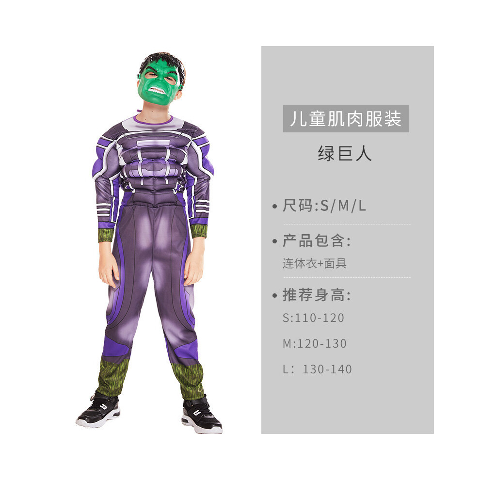 (Children's Muscle Purple Hulk, M) Avengers Iron Man Spider-Man Captain America Cosplay Halloween Children's Costume Superhero Iron Man
