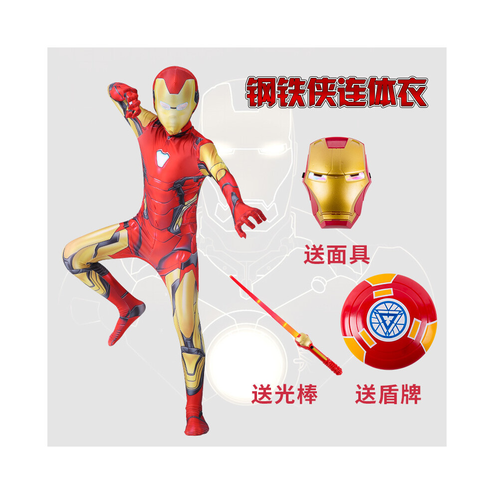(Iron Man with Hands + Mask and Light-up Shield, 130 (Height 120-130cm)) Children's Iron Man Armor Bodysuit Cosplay Avengers Captain America Costume T