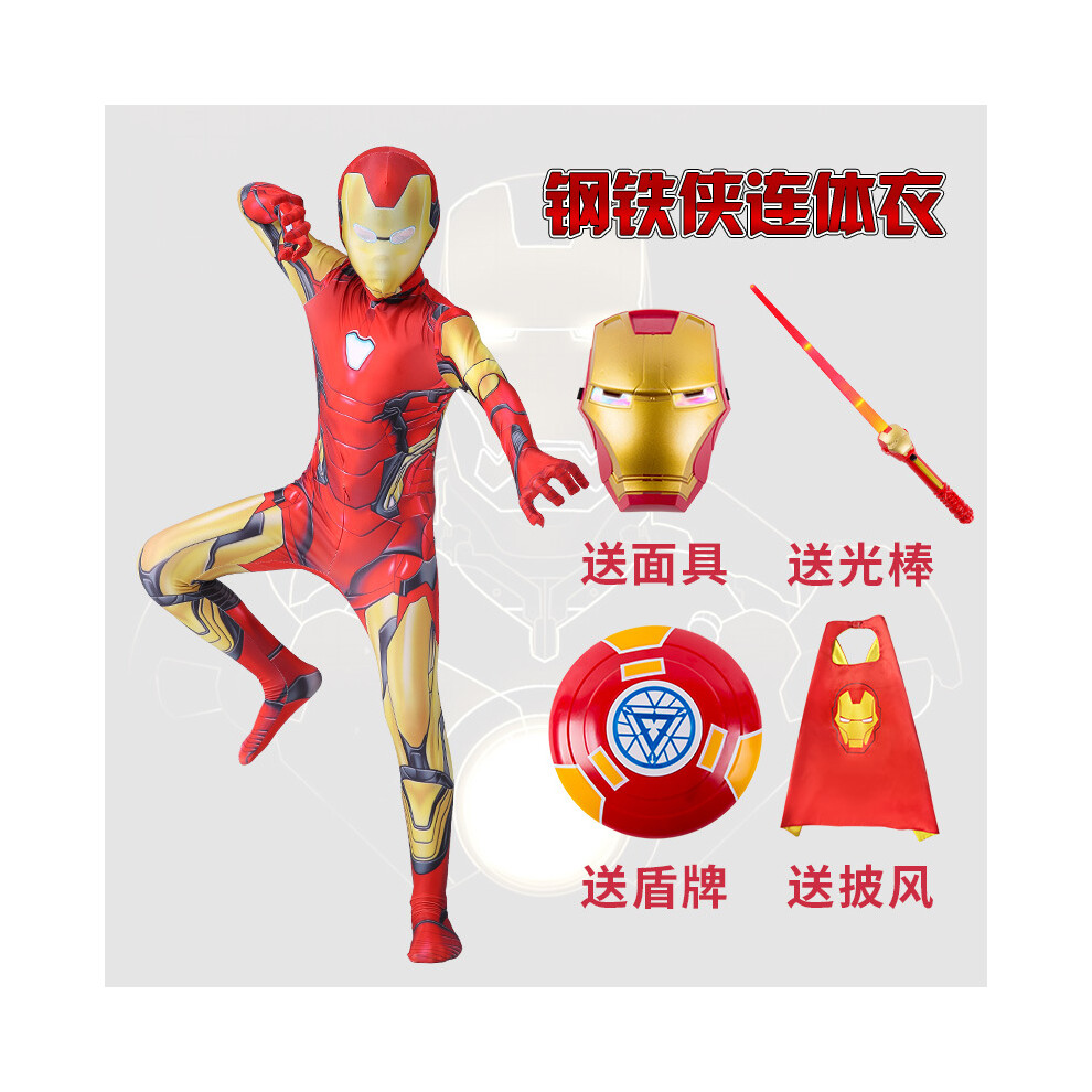 (Red Iron Man jumpsuit + mask, M) Cos children's clothes Captain America Hulk Iron Bat Spider Flash muscle