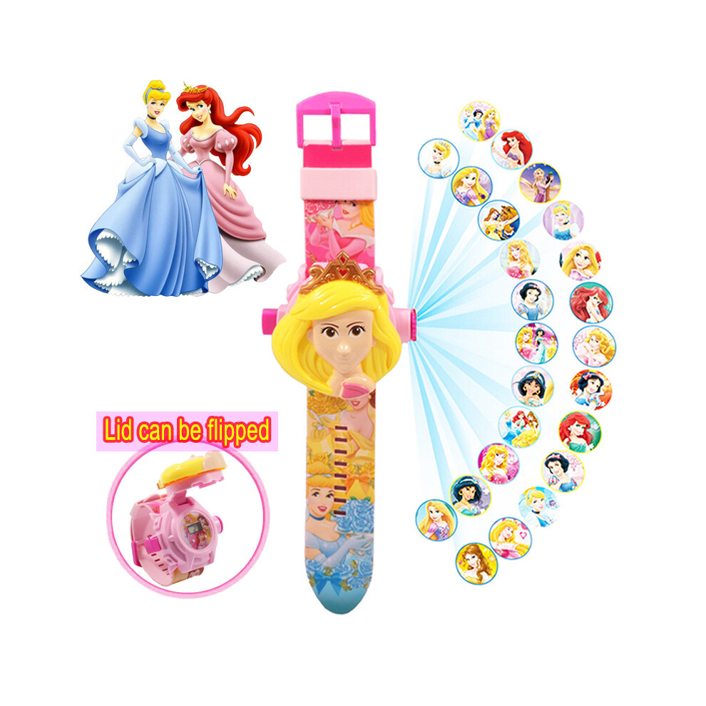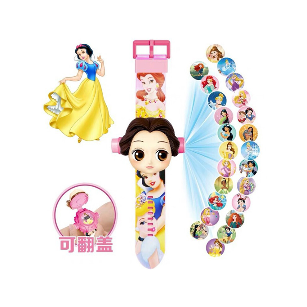 (Snow White) Spiderman 24 Projection Watch Captain America Iron Man Toy Anime Hulk Digital Clock Student Wristwatches Children's Gifts