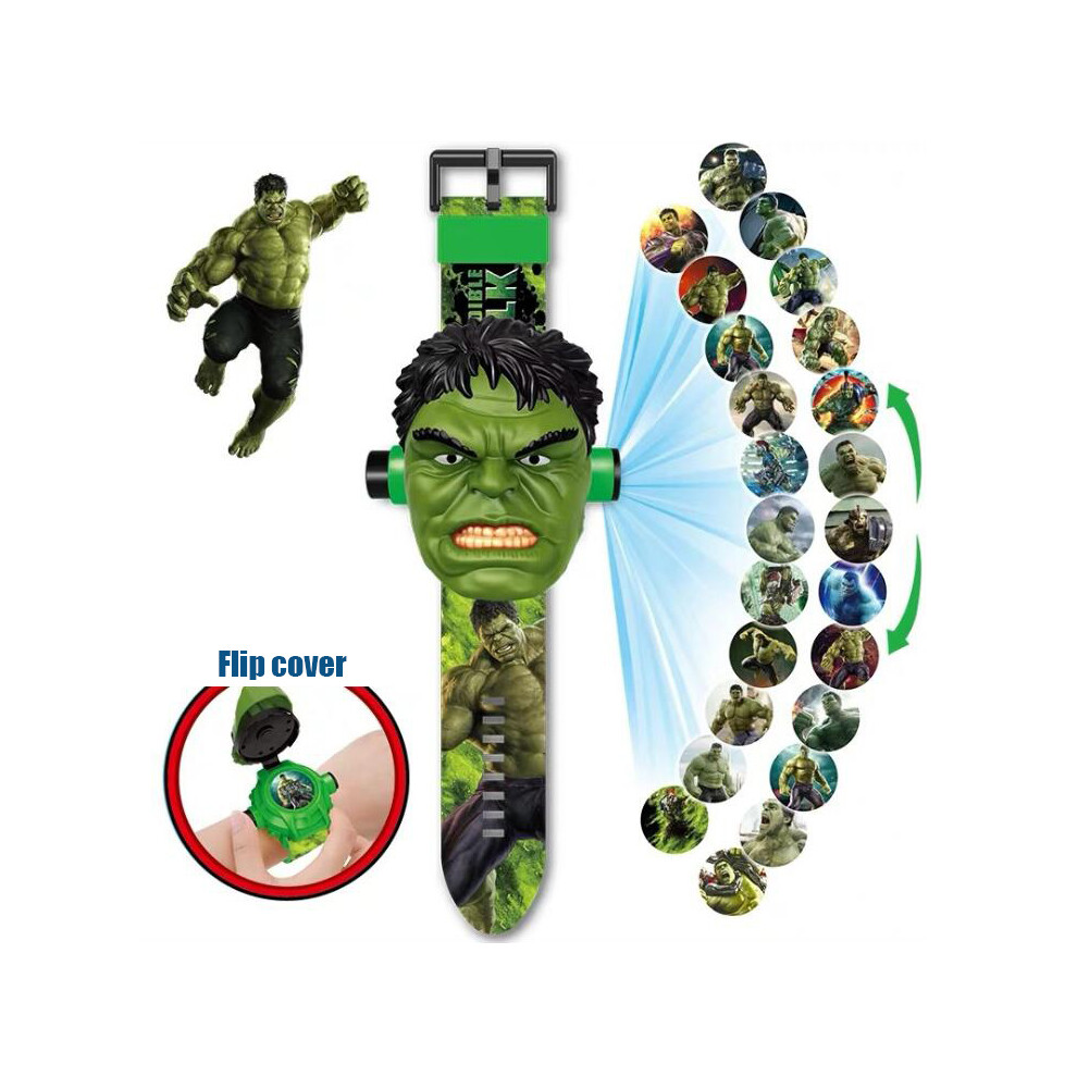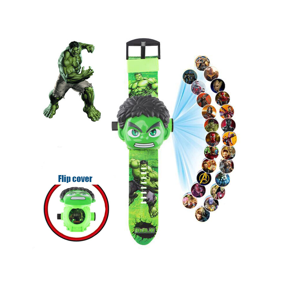 (Hulk-01) Spiderman 24 Projection Watch Captain America Iron Man Toy Anime Hulk Digital Clock Student Wristwatches Children's Gifts