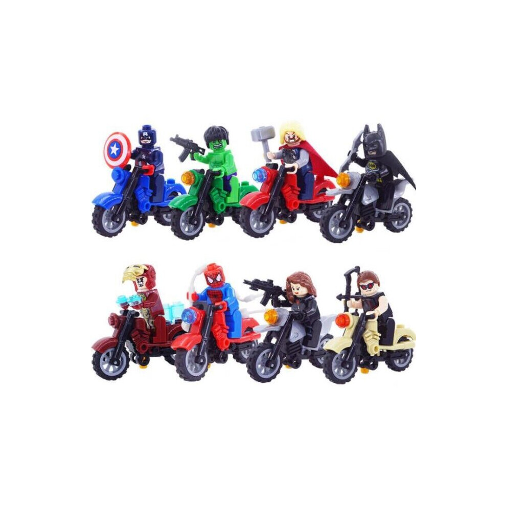 8PCS Superhero Motorcycle Building Blocks Minifigure Toy Spider-Man Iron Man Batman Minifigure Toy Kids Collection Gift