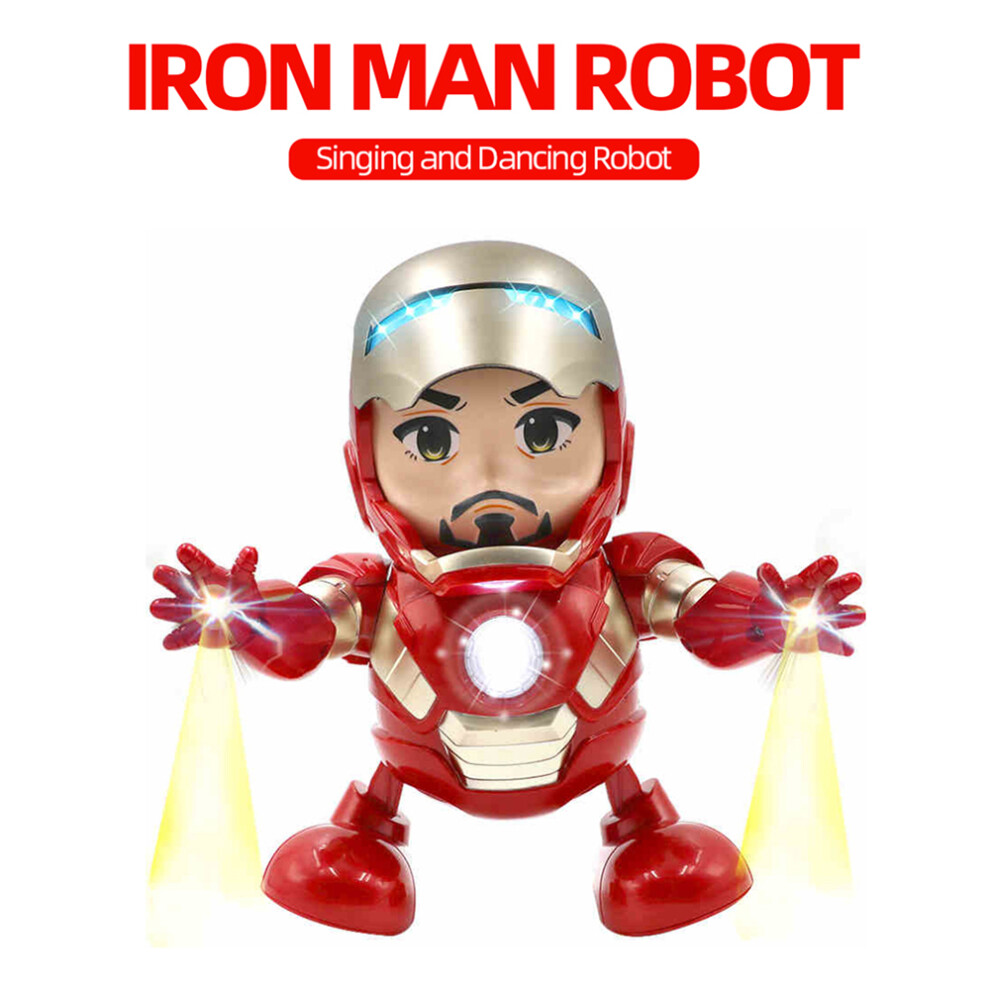 Dancing Iron Man Robot Toy with LED Lights, Singing & Moving 19cm
