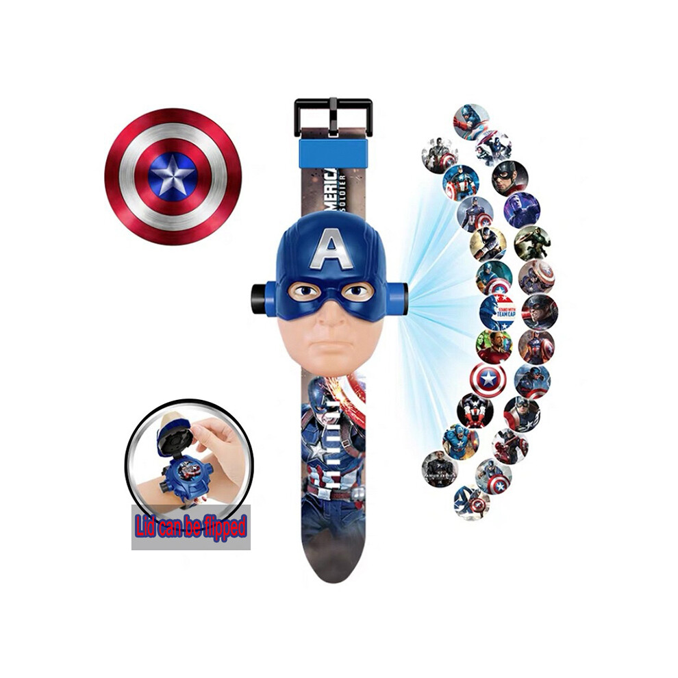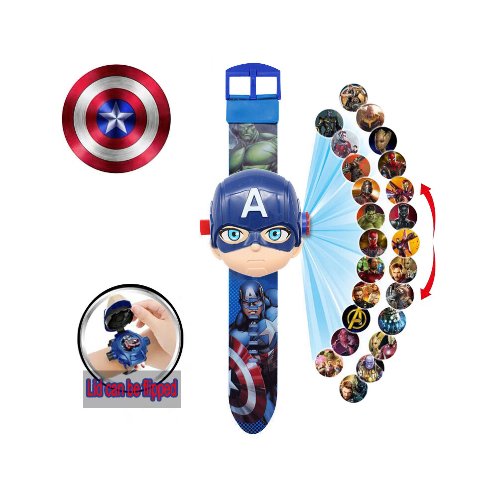 (Captain America-02) Spiderman 24 Projection Watch Captain America Iron Man Toy Anime Hulk Digital Clock Student Wristwatches Children's Gifts