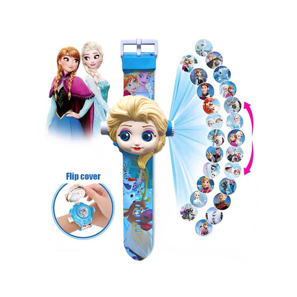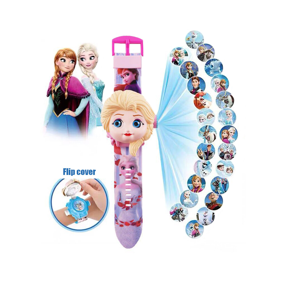 (Elsa-01) Spiderman 24 Projection Watch Captain America Iron Man Toy Anime Hulk Digital Clock Student Wristwatches Children's Gifts