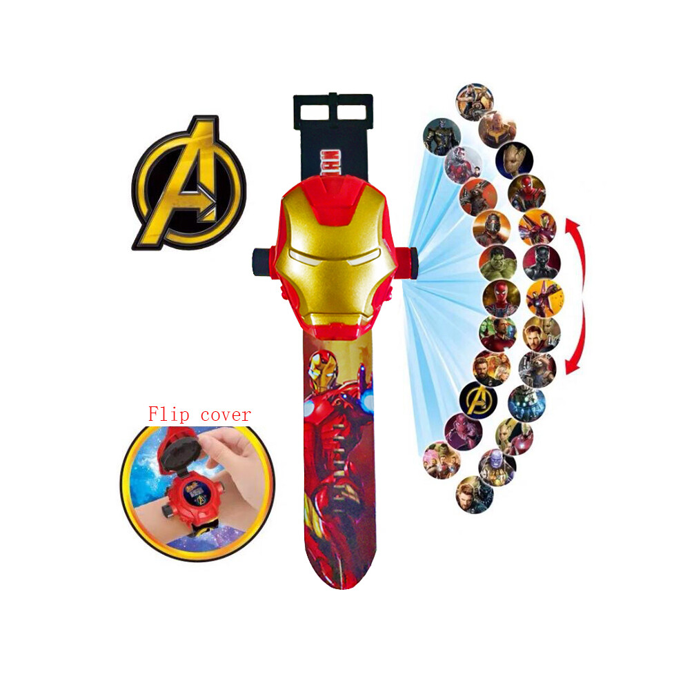 (Iron Man) Spiderman 24 Projection Watch Captain America Iron Man Toy Anime Hulk Digital Clock Student Wristwatches Children's Gifts