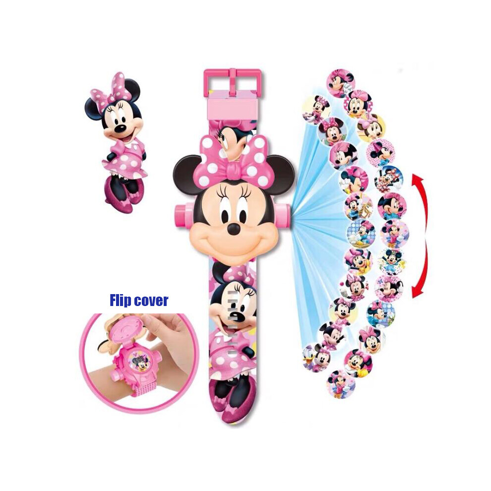 (Minnie) Spiderman 24 Projection Watch Captain America Iron Man Toy Anime Hulk Digital Clock Student Wristwatches Children's Gifts