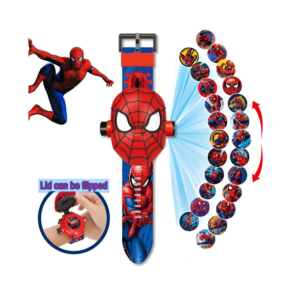 (Spider-Man) Spiderman 24 Projection Watch Captain America Iron Man Toy Anime Hulk Digital Clock Student Wristwatches Children's Gifts