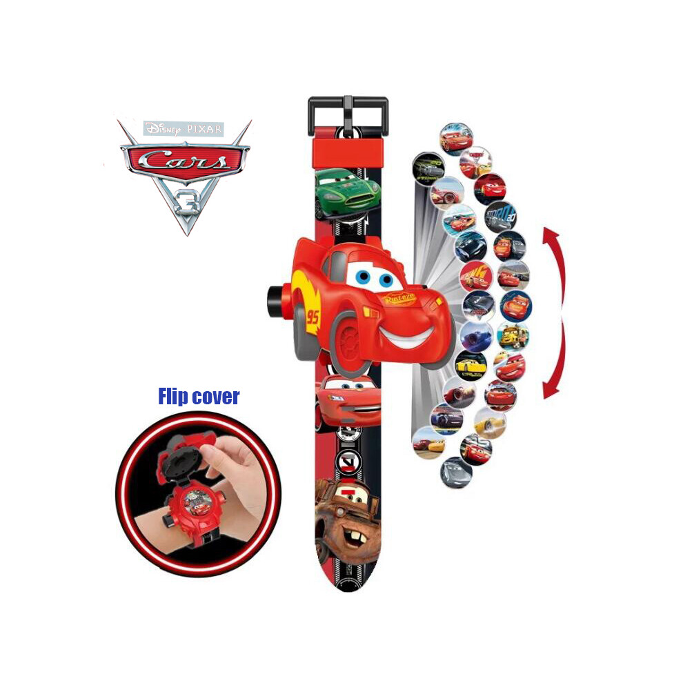 (McQueen) Spiderman 24 Projection Watch Captain America Iron Man Toy Anime Hulk Digital Clock Student Wristwatches Children's Gifts