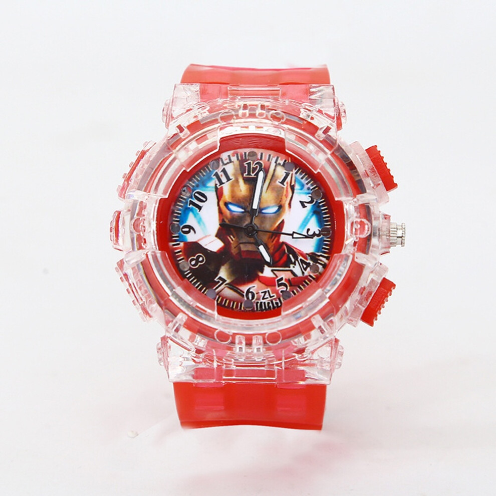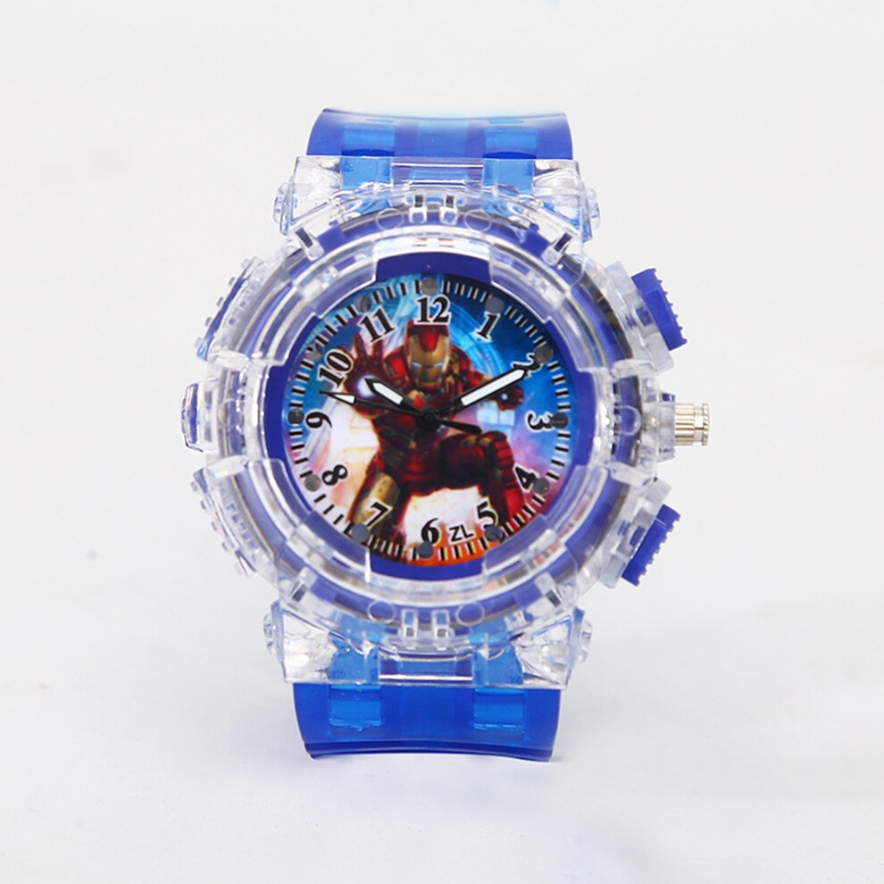 (Iron Man A) Cartoon Kids Spiderman Watch LED Light Kids Watches