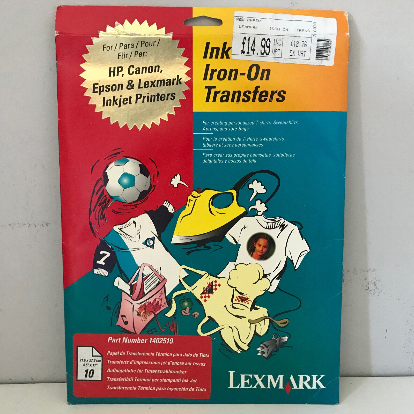 Lexmark LETTER 8.5x11" IRON-ON TRANSFER PAPER 10 SHEETS for Inkjet Printers L6
