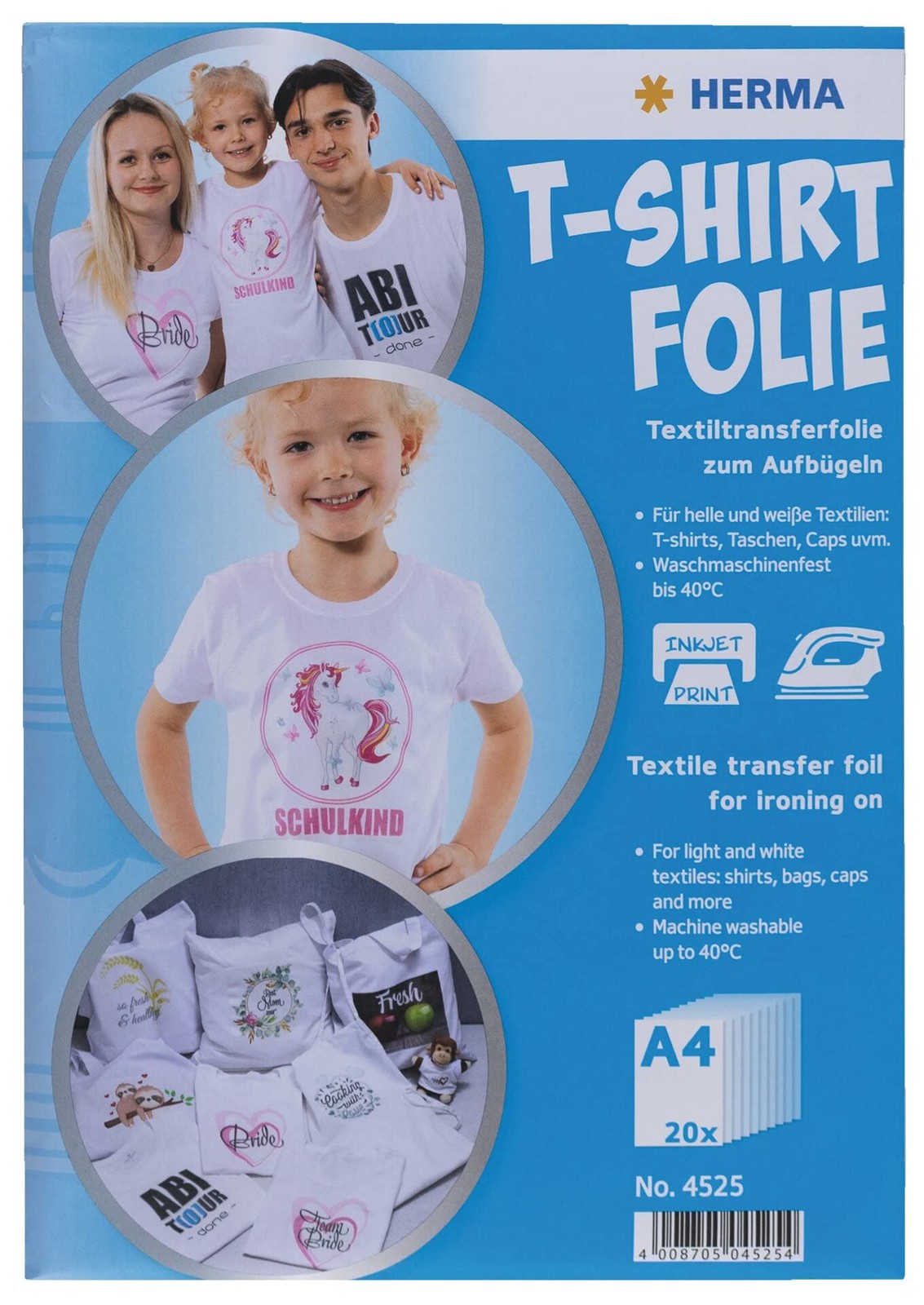 HERMA Inkjet Iron On T Shirt Transfer Paper for White and Light Fabrics, 20 Shee