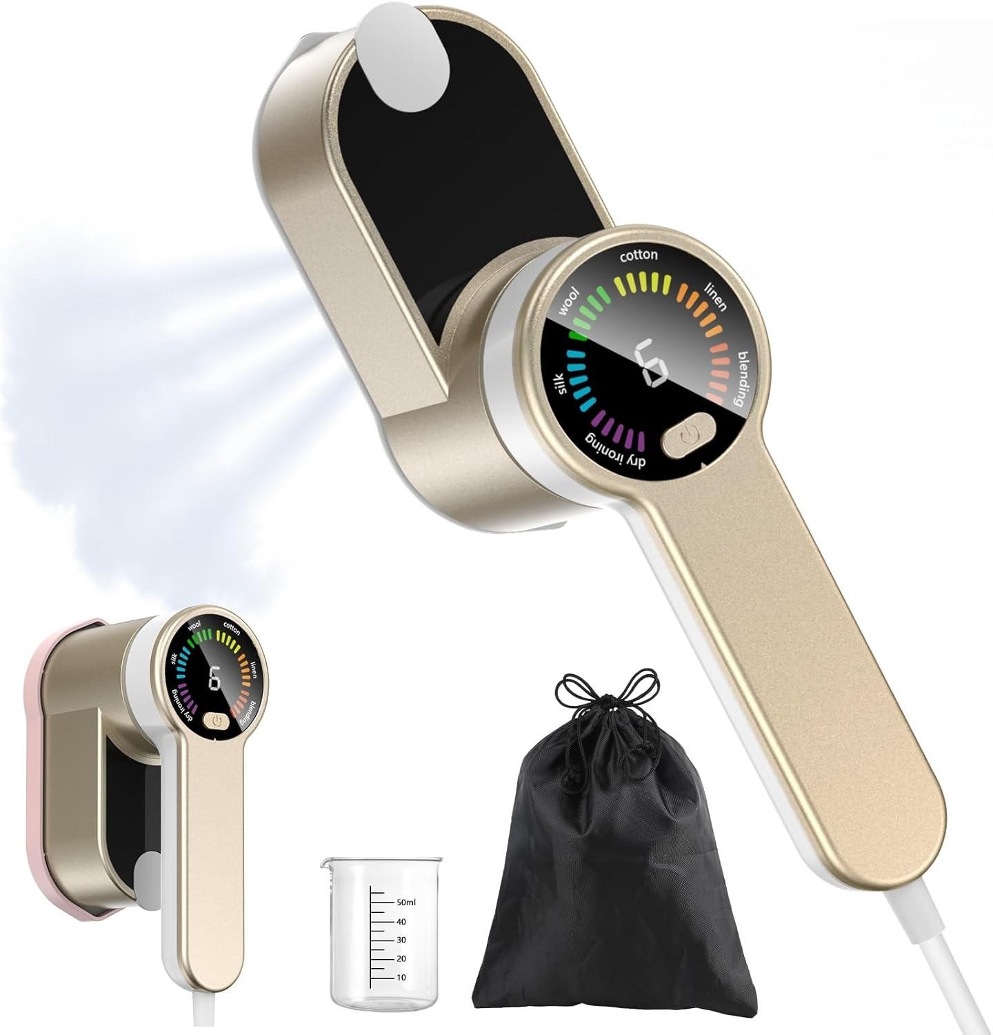 PKBD Travel Iron Handheld Clothes Steamer,Travel Steamer for Clothes Wrinkle Remover-Steamer Iron with LED Screen 6 Speed Steam 10S Rapid Heating-1200W Portable Clothes Steamer for Home & Travel,Gold