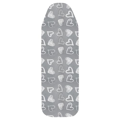 GEEZY Ironing Board Cover 122 x 38 cm - Grey Heart Design - Thick Double Layer, Heat Reflective & Scorch Resistant, Elasticated for Secure Fit, Fits Most Standard Boards, Machine Washable
