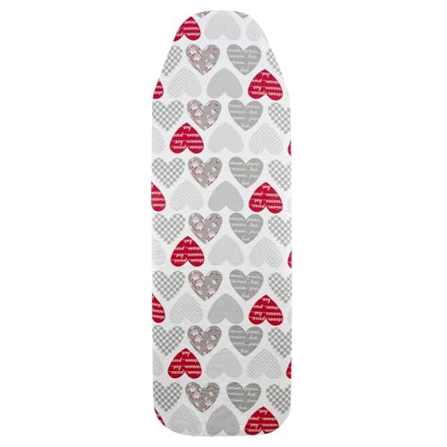 GEEZY Ironing Board Cover 122 x 38 cm - Red Heart Design - Thick Double Layer, Heat Reflective & Scorch Resistant, Elasticated for Secure Fit, Fits Most Standard Boards, Machine Washable