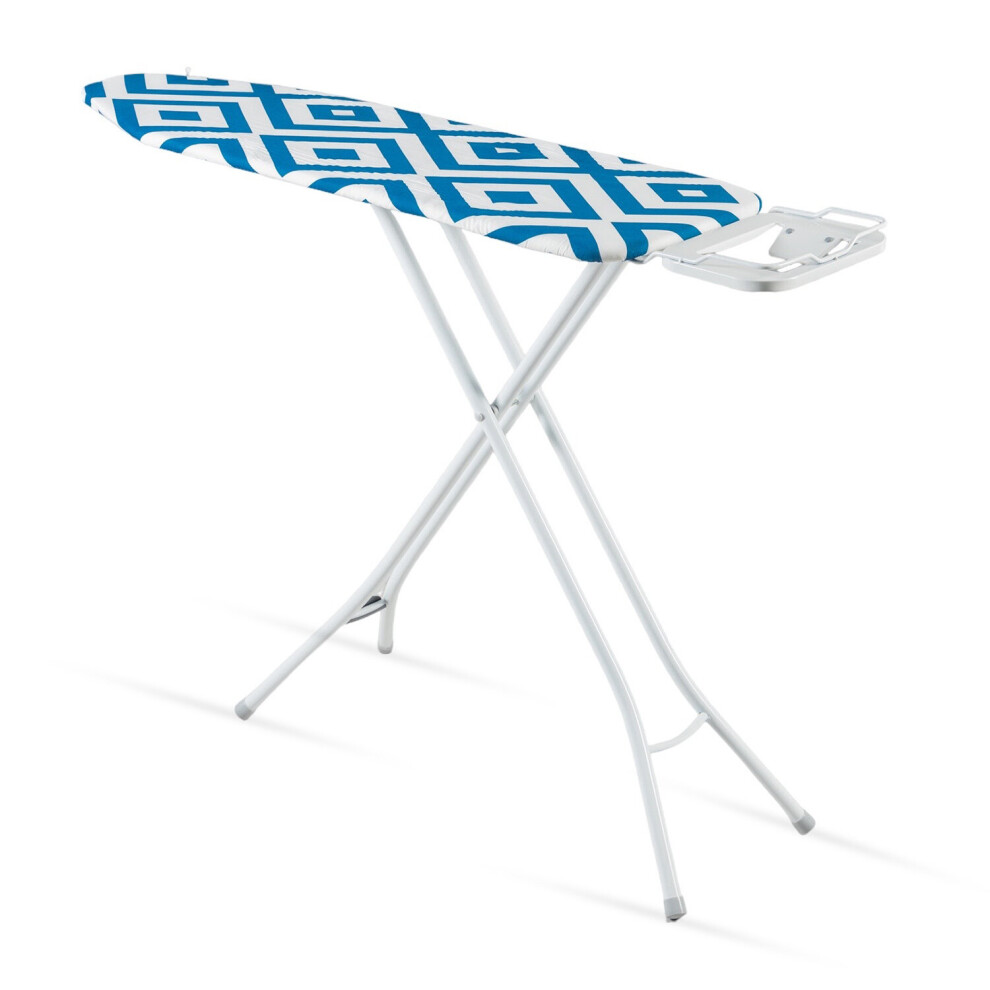 Mabel Home Adjustable Height, Deluxe, 4-Leg, Ironing Board, Additinoal Cover, Foldable, Collapsible, Space Savier Ironing Table, Blue/White Patterned