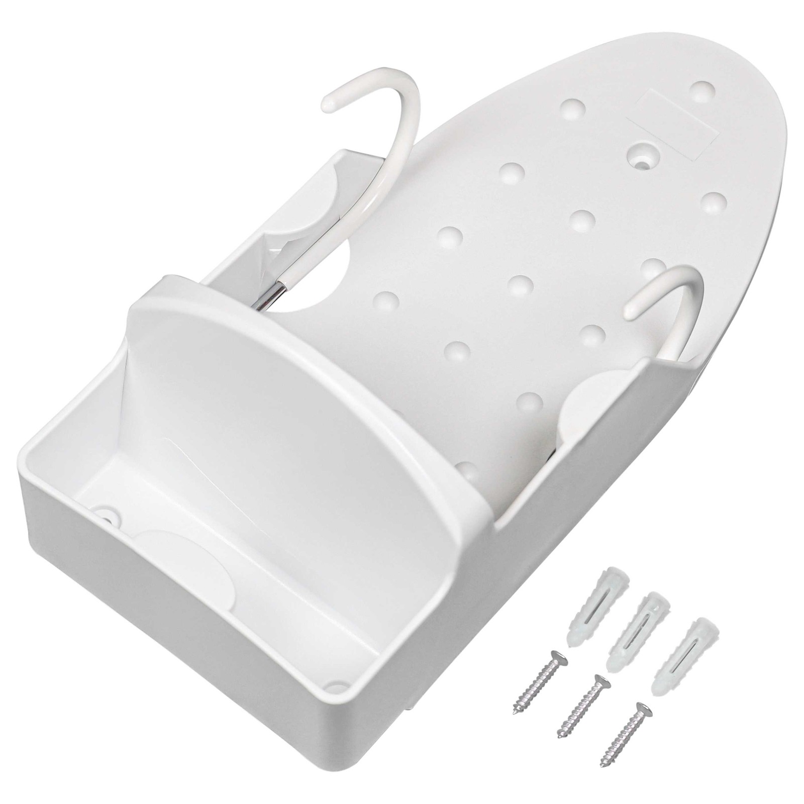 Wall Mounted Hanging Holder Rack with Hooks for Ironing Board Steam Iron white