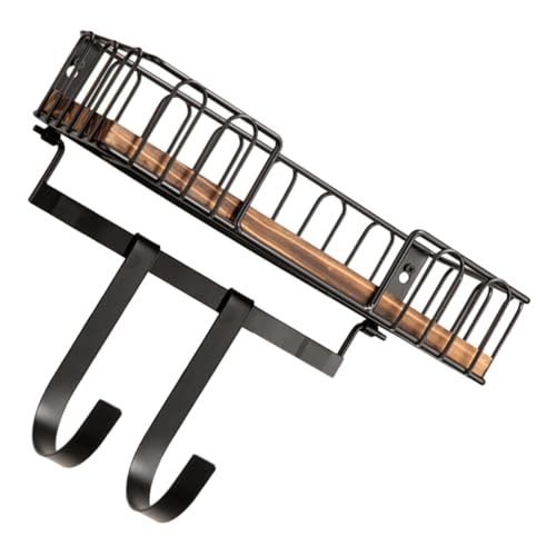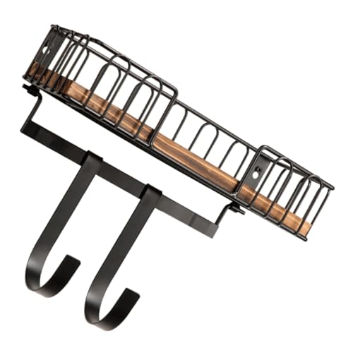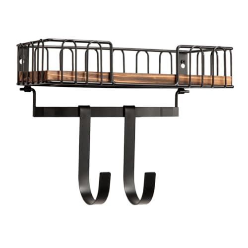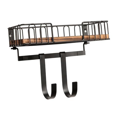 SOIMISS Wooden Wall Mount Hanger with Shelf and Removable Hooks Multi-functional Household Hook for Key Storage and Ironing Board Wall Mount Wood and Iron Organizer for Entryway and Living