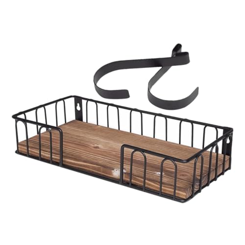 GOOHOCHY Wall-mounted Wooden and Iron Key Holder Rack Ironing Board Storage Organizer for Entryway and Bathroom, Multi-functional Wall Shelf Hook for Keys, Bags, and Iron Hang