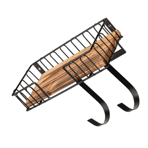 Ironing Board Hanger - 32.3 cm Wall Mounted, Iron Rack, Farmhouse Laundry Decor Storage Basket with Wooden Base | Easy to Install Ironing with Adjustable Hooks for TV Leg