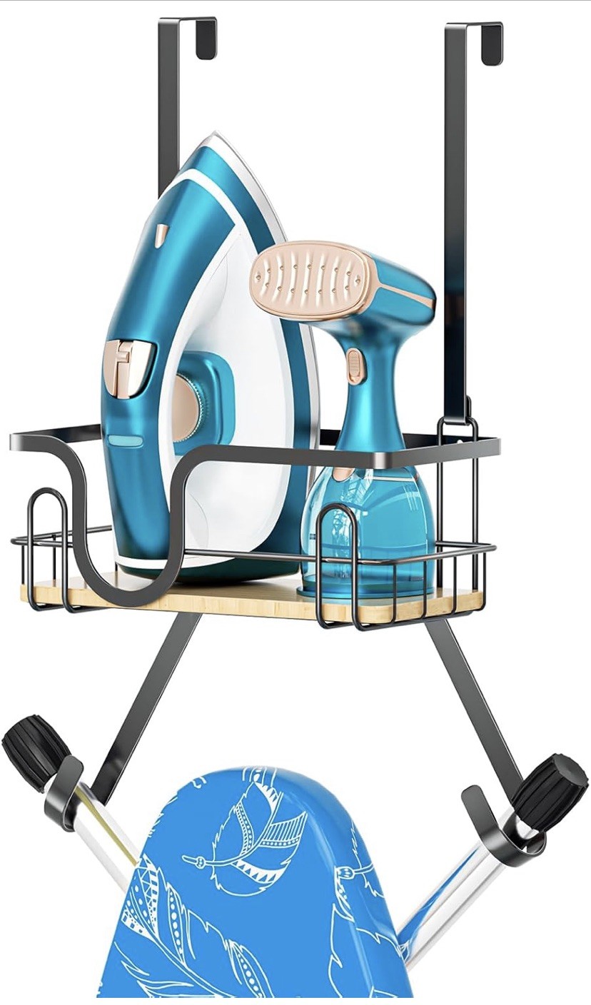Over-the-Door Ironing Board Hanger - Space-Saving Laundry Room Storage Caddy