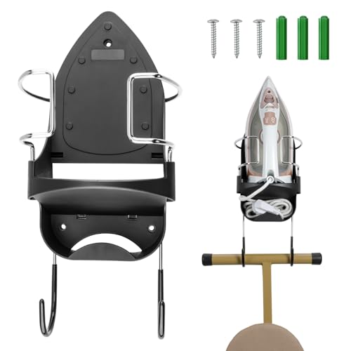 Over The Door/Wall Mount Ironing Board Hanger, Laundry Room Iron and Ironing Board Caddy Storage Holder, Black (Black)