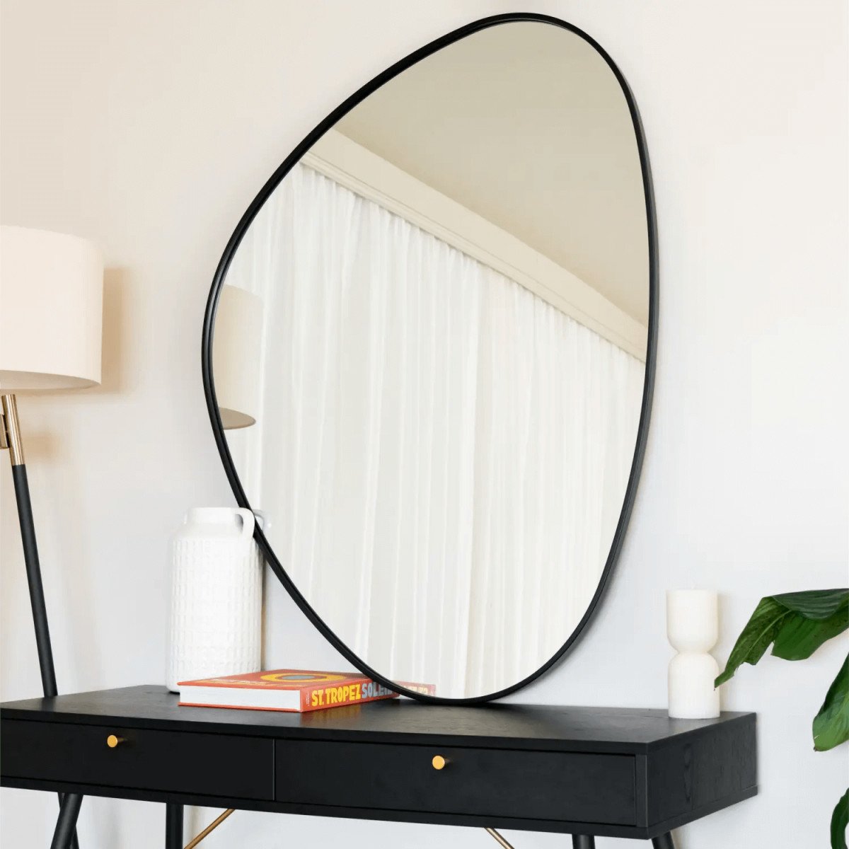 Mirror Irregular Pebble Black Metal Frame 4mm HD Glass 120x90cm Statement Unique