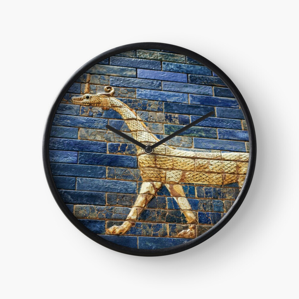 (Ancient tiled dragon from the Babylonic Ishtar Gate=4625) Wall Clock 12 Inch Funny Mantel & Tabletop Art Decor for Home Bedroom Office