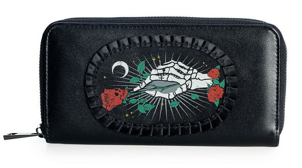 Women's Black Gothic Skeleton Hand Flower Punk Rockabilly Ishtar Wallet BANNED